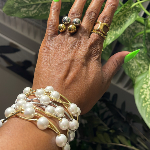 Gold Pearl Stacker Bracelet Set (3)