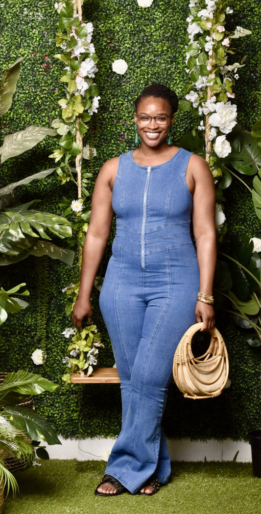 Keisha | Medium Denim Flare Jumpsuit