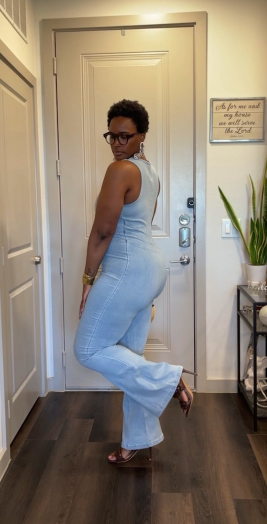 Keisha | Light Denim Flare Jumpsuit